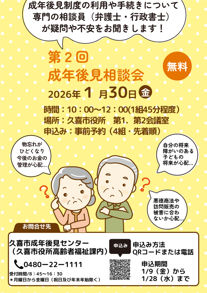 【内容】成年後見制度の利用や手続きに関する個別相談