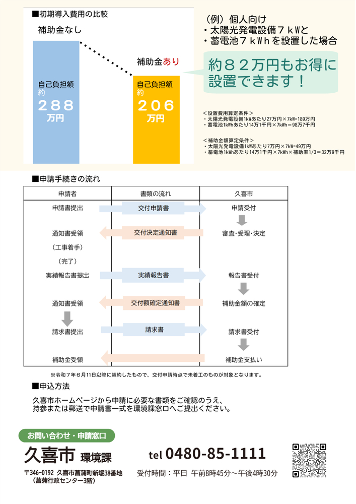 ※1 本要件は、現時点において、申請者が久喜新電力株式会社の同意を得ることを条件とするものではありません。久喜新電力株式会社の売電受入体制が整い次第、改めて市から申請者へ手続き方法をご案内します。なお、本件に関するお問い合わせは、久喜新電力株式会社ではなく、久喜市環境課までお願いいたします。