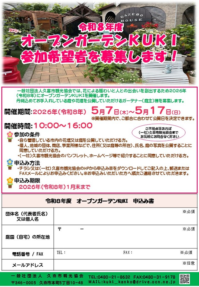 令和8年度オープンガーデンKUKI参加希望者を募集します。